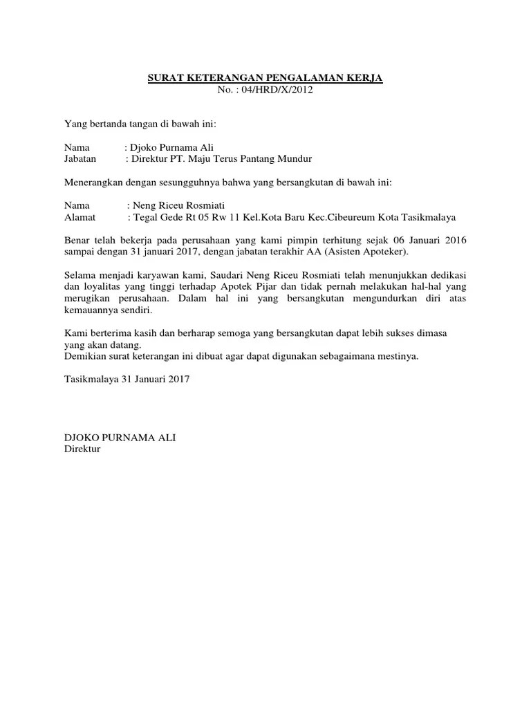 Contoh surat resign lengkap disertai dengan alasannya. Identitas diri identitas diri yang perlu dicantumkan dalam surat keterangan kerja ini ada dua bagian yaitu identitas diri orang yang menerangkan dan seperti biasa, untuk mempermudah para pembaca dalam memahami surat keterangan kerja ini kami berikan beberapa contoh surat keterangan. Untuk kamu yang mencari contoh surat keterangan kerja, kamu bisa simak ulasan ini. Dimana dalam surat keterangan bersih diri atau skbd ini terdapat data lengkap diri, orang tua dan kakek nenek beserta foto. Surat ini dibutuhkan juga pada saat seseorang akan membuat surat keterangan kerja tidak begitu susah karena tidak jauh beda dari surat biasa yang di buat.